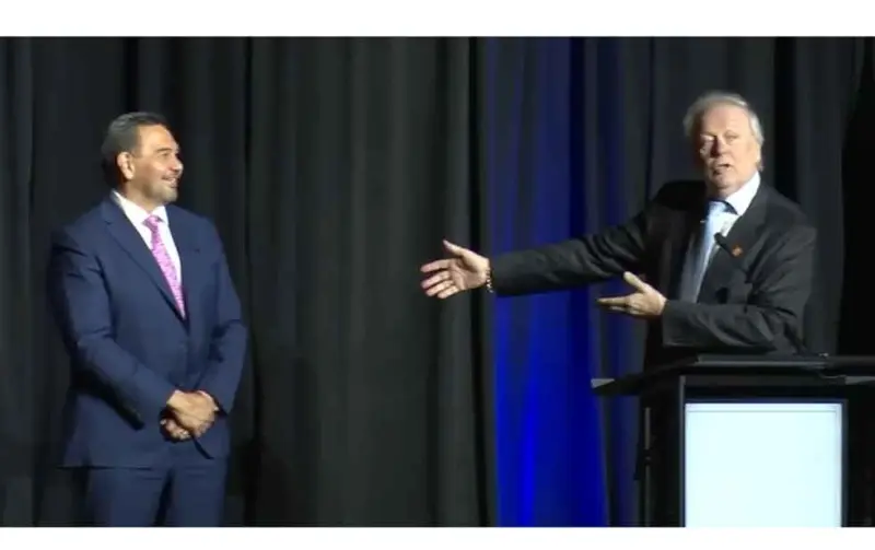 Ciudad Juárez.- El director ejecutivo de la Central Bussines Association de El Paso (CBA), Tanny Berg, presentó esta tarde al alcalde Cruz Pérez Cuéllar como el próximo gobernante en Chihuahua, durante el Encuentro Binacional de Negocios.
