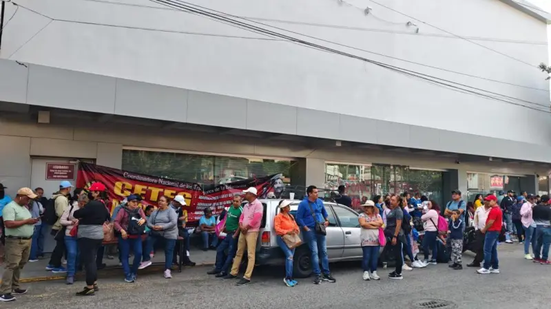 Desde temprana hora, los docentes se apostaron con pancartas y lonas en sucursales bancarias ubicadas en el zócalo capitalino, impidiendo el acceso a usuarios en instituciones como BBVA, Banamex, Banco Azteca y Coppel.