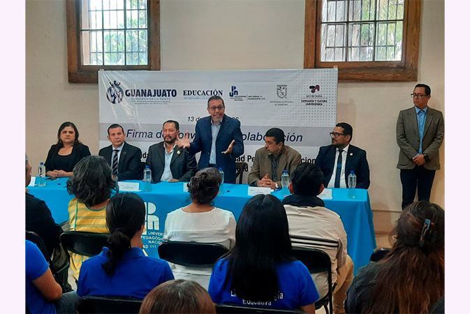 La Universidad Autónoma de Querétaro (UAQ) y la Secretaría de Educación del estado de Guanajuato formalizaron un convenio de cooperación académica y cultural con el propósito de desarrollar de manera conjunta acciones encaminadas al fortalecimiento educativo, la investigación y la difusión del conocimiento. Este fue suscrito por el secretario de Extensión y Cultura Universitaria, Dr. Eduardo Núñez Rojas y el director general de Educación Superior, Mtro. José Alberto López García.