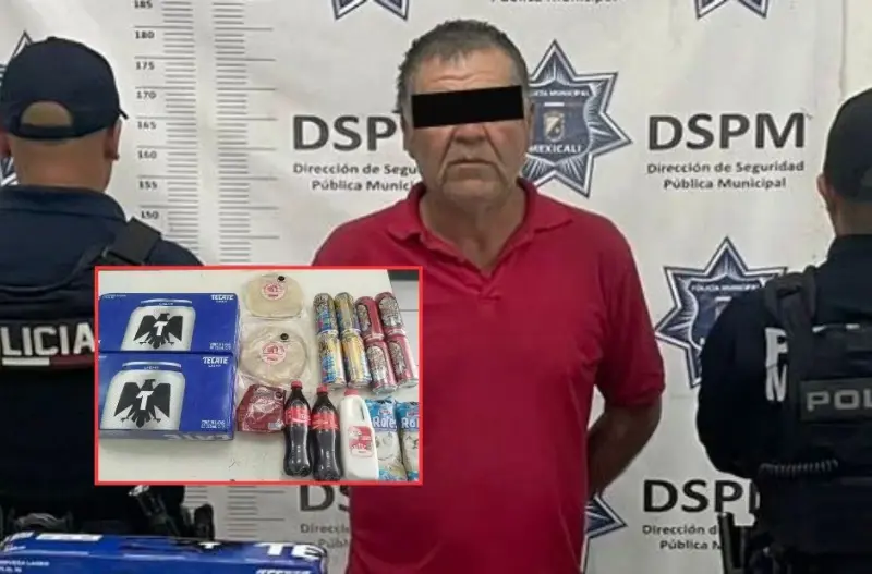 Mexicali,B.C.-Lo que comenzó como un robo a una tienda al poniente de Mexicali terminó con la detención de un hombre que cargaba con dos órdenes de aprehensión activas por delitos previos.