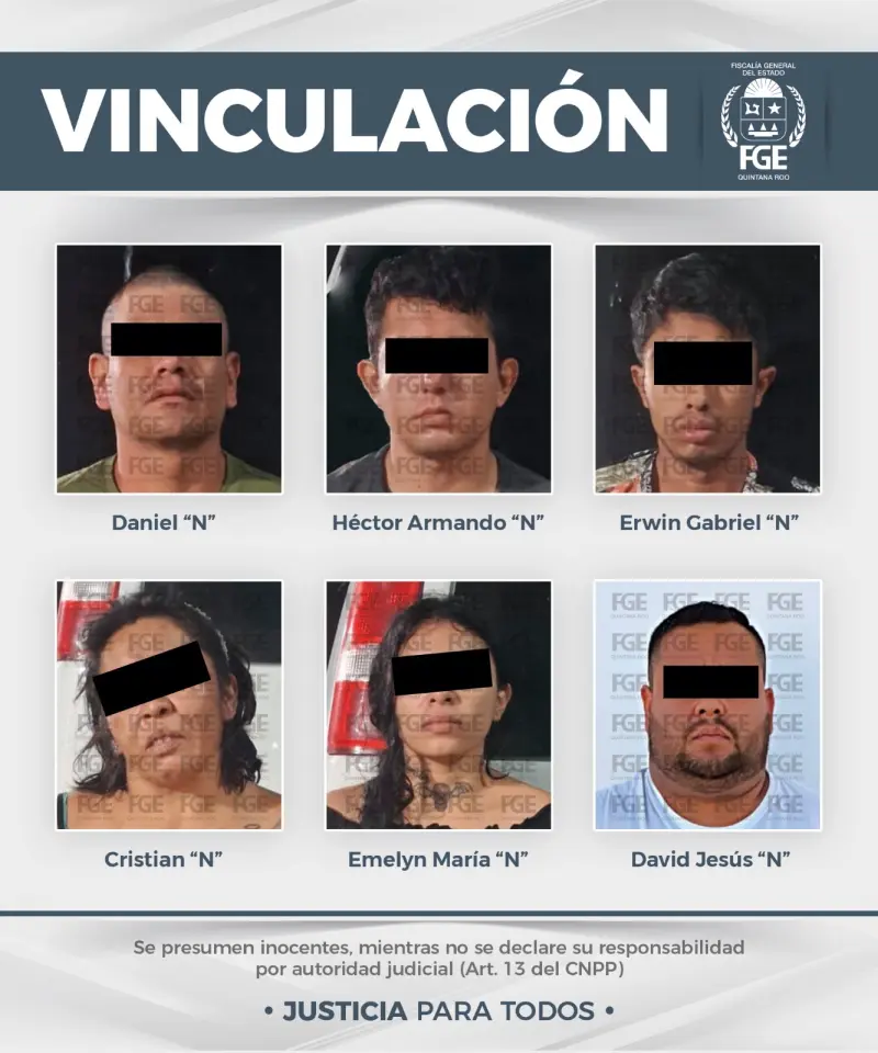 Según el comunicado, en una primera audiencia en Benito Juárez, se logró la vinculación a proceso de Héctor Armando “N”, Daniel “N”, Erwin Gabriel “N”, Cristian “N” y Emelyn María “N”, quienes fueron detenidos por elementos de la Policía Municipal. A los dos primeros se les imputó la variante de suministro de marihuana, mientras que a los tres restantes se les atribuye la posesión con fines de suministro. El Juez de Control calificó de legal su detención y les impuso la medida cautelar de prisión preventiva justificada por lo que dure el proceso.