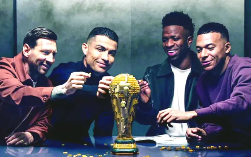 Los delanteros Lionel Messi, Cristiano Ronaldo, Kylian Mbappé y Vinicius Junior armaron juntos la copa del mundo en un comercial de Lego.