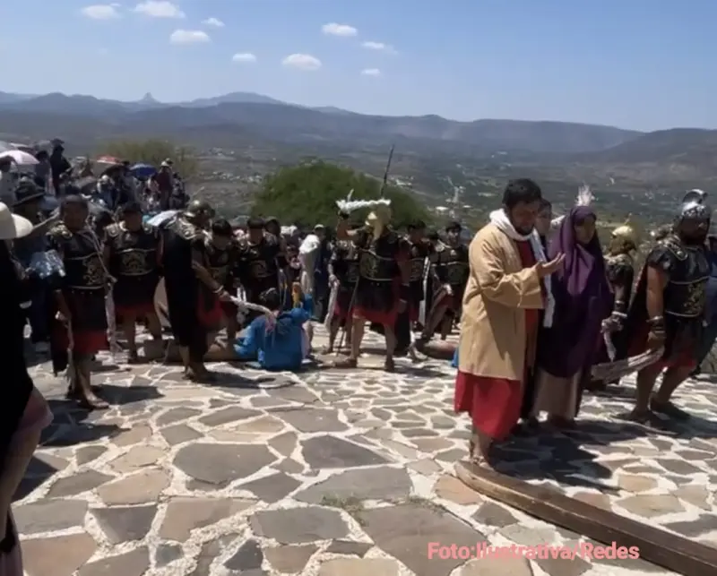 ¡Casi no llega a la Cruz!... ‘Jesús’ sufre fuerte caída por empujón durante Viacrucis en Edomex (Video)