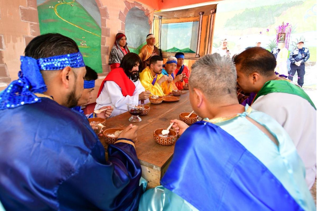 En el patio del penal, frente a sus familiares, 63 hombres estuvieron en escena, seis más formaron parte del equipo de escenografía y utilería, así como ocho mujeres representantes de la pastoral penitenciaria, en conjunto se prepararon física y espiritualmente para representar uno de los mayores y trascendentales pasajes en la religión católica.