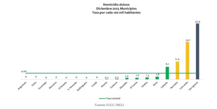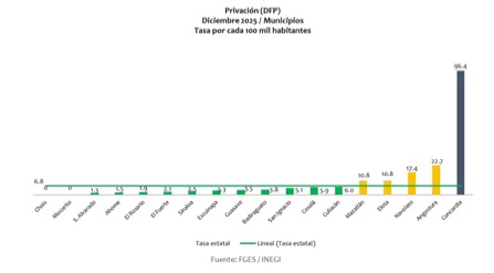 Tan solo el pasado mes de diciembre, Concordia se colocó en segundo lugar con una tasa de homicidios por cada 100 mil habitantes de 24.1; y en primer lugar en el delito de privación ilegal de la libertad, con una tasa de 96.4, lo que refleja el clima de inseguridad que se padece en la zona.