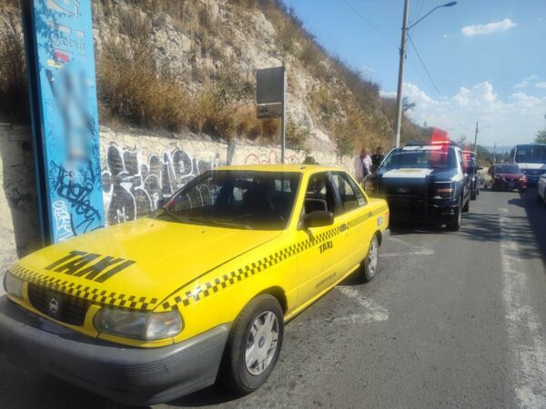 Policías de la Secretaría de Seguridad Pública Municipal de Querétaro (SSPMQ) atendieron un reporte emitido desde el área de videovigilancia del CAE 9-1-1, sobre un taxi aparentemente vinculado en el robo de otro automotor, circulando sobre la carretera a Chichimequillas, a la altura de la colonia Nuevo San Pedrito Peñuelas.