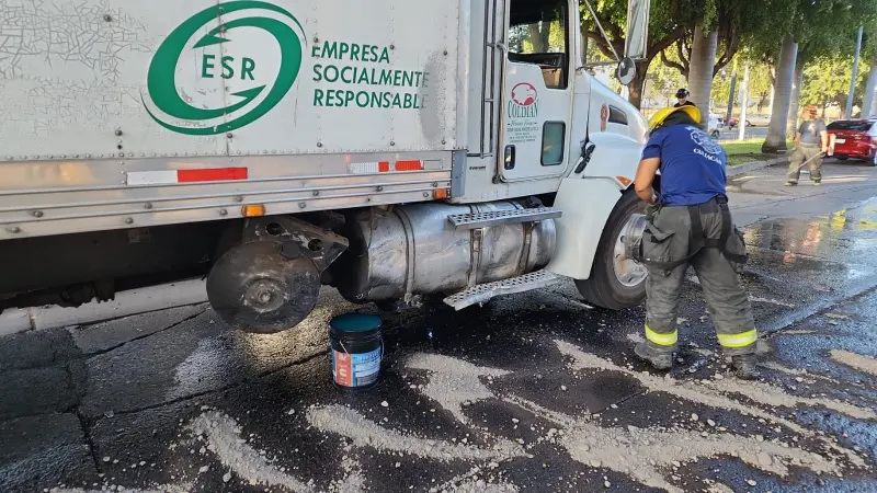 CULIACÁN, Sin., 5 de abril de 2026.- Un choque entre dos vehículos provocó el derrame de unos 200 litros de combustible en una calle del sector Centro de Culiacán.
