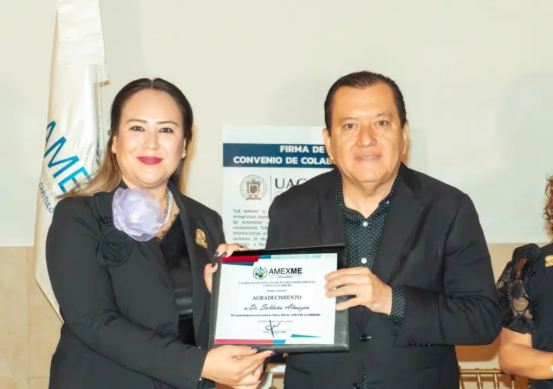 El rector agradeció a la presidenta de AMEXME Guerrero, C.P. Liliana Palomares Bataz, por su disposición para concretar esta alianza estratégica, la cual permitirá impulsar proyectos de negocio y brindar herramientas que faciliten la inserción de las egresadas en el mundo productivo.
