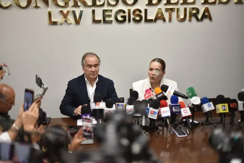 La legisladora dio una conferencia de prensa, acompañada por el nuevo dirigente estatal de Movimiento Ciudadano, Sergio Raúl Esquer Peiro.