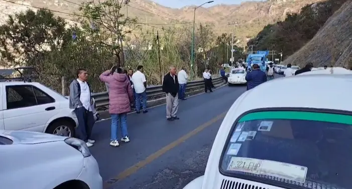 ACAPULCO, Gro., 8 de abril de 2026.- Choferes del transporte público de Taxco bloquearon durante una hora las salidas carreteras de esa ciudad hacia Cuernavaca e Iguala.