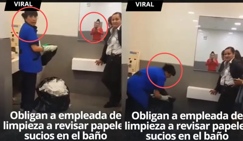 En las imágenes se observa a la empleada hurgando entre residuos mientras es vigilada por su superiora y registrada en video por las propias clientas.