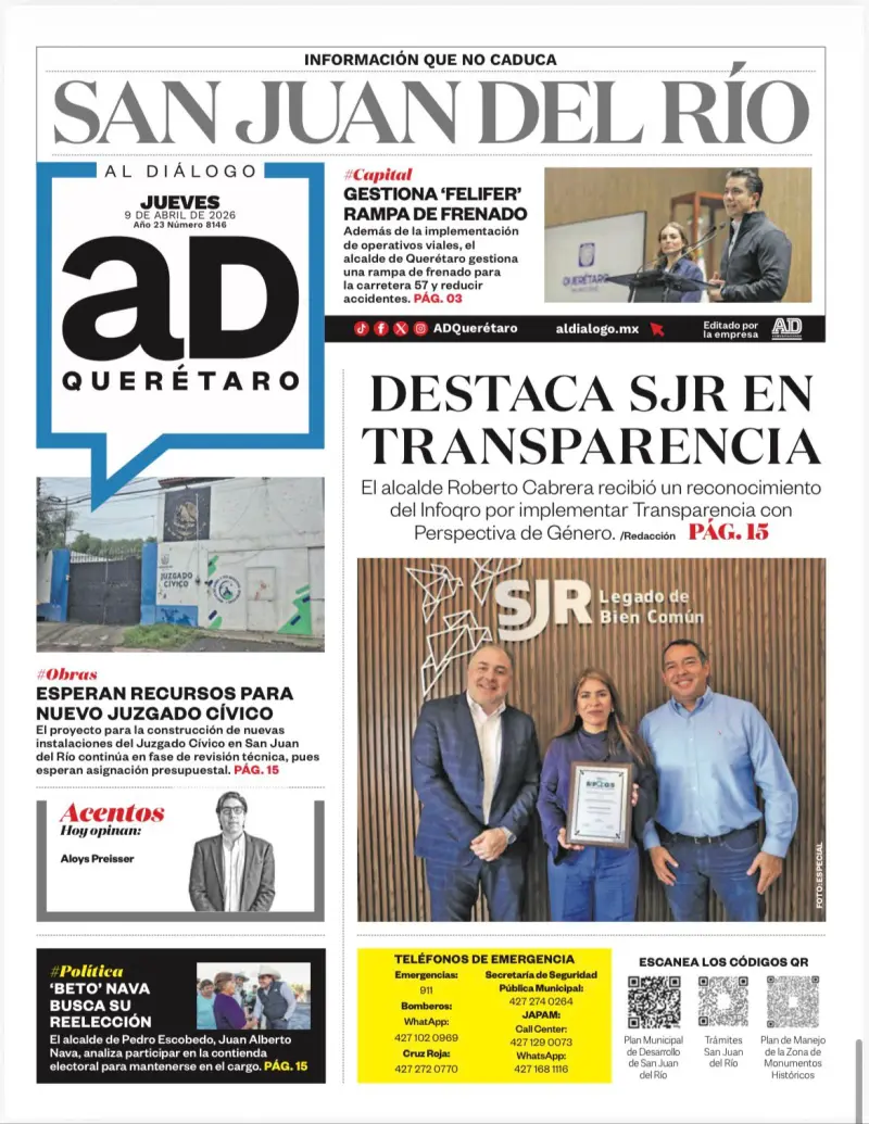 #reconocimiento#Queretaro#transparencia#obras publicas#san juan del rio#gobierno local#perspectiva de genero#Impreso Aldialogo