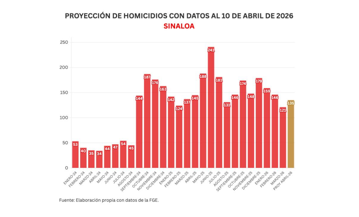 Con estos datos, abril proyecta para cerrar con 135 homicidios.