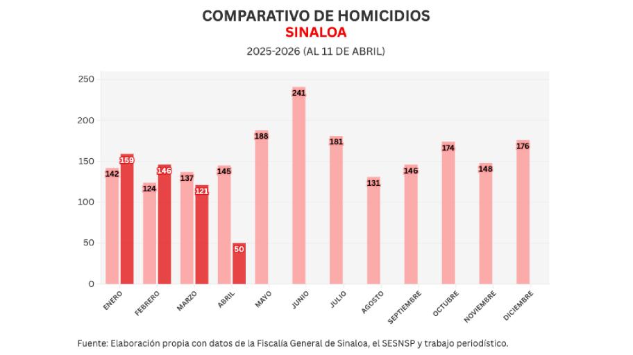 También Noroeste lleva un conteo mensual de acuerdo a lo registrado por el Secretariado Ejecutivo del Sistema Nacional de Seguridad Pública (SESNSP), en abril se han registrado 50 homicidios para un promedio de 4.5 diarios.