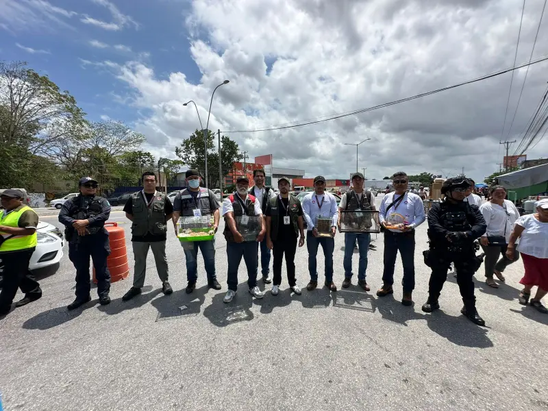 CANCÚN, QRoo, 12 de abril de 2026.- Autoridades municipales aseguraron diversas especies de fauna silvestre y exótica que eran comercializadas de manera ilegal en un tianguis de la Supermanzana 100.