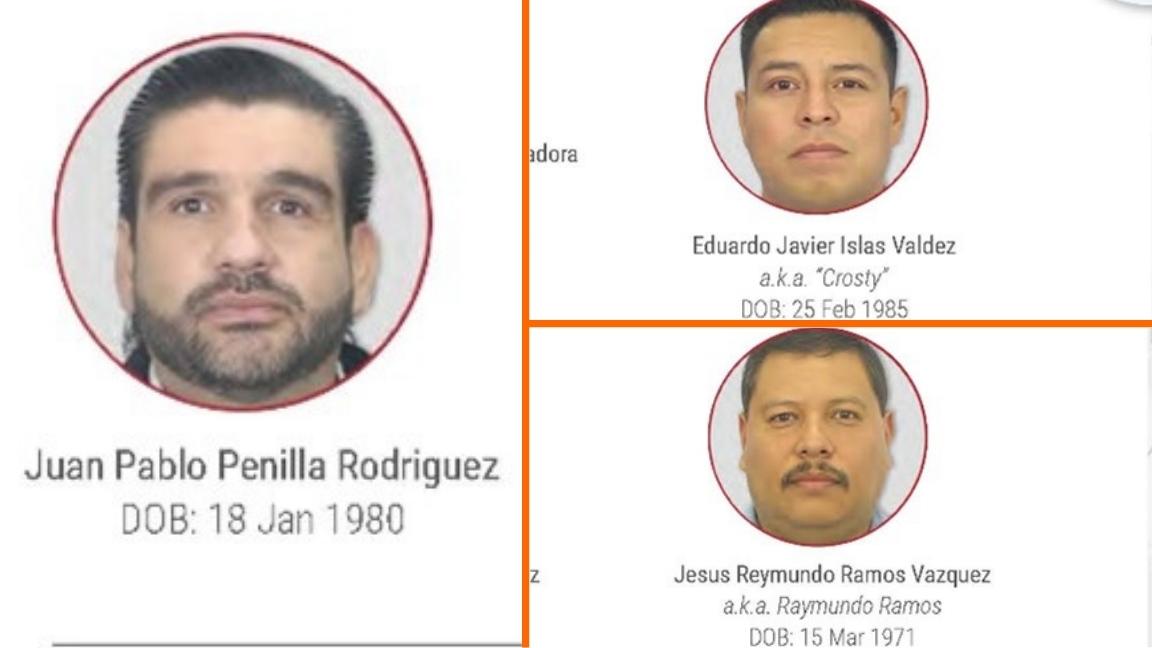 La Oficina de Control de Activos Extranjeros (OFAC) informó que se trata de Juan Pablo Penilla, abogado de Ismael Zambada, alias ‘El Mayo’ y fue defensor de Miguel Ángel Treviño Morales, alias ‘Z-40’; Jesús Reymundo Ramos Vázquez, más conocido como Raymundo Ramos, activista por los “derechos humanos”; y Eduardo Javier Islas Valdez, alias ‘Crosty’, miembro del CDN.