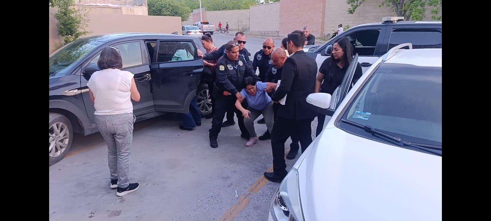 Cerca de las 19:00 horas, una unidad de la Policía del Estado, con destacamento en Saltillo, llegó acompañando a un actuario del juzgado civil, con el fin de retirar a una niña de aproximadamente 8 años.