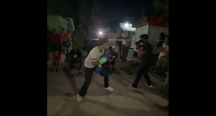 MONCLOVA, COAH.- Una serie de combates improvisados encendió la noche del pasado 13 de abril en un predio de la colonia Colinas de Santiago, en Monclova, donde vecinos participaron en peleas de boxeo callejero organizadas bajo el nombre de “Retas de box en tu barrio”.