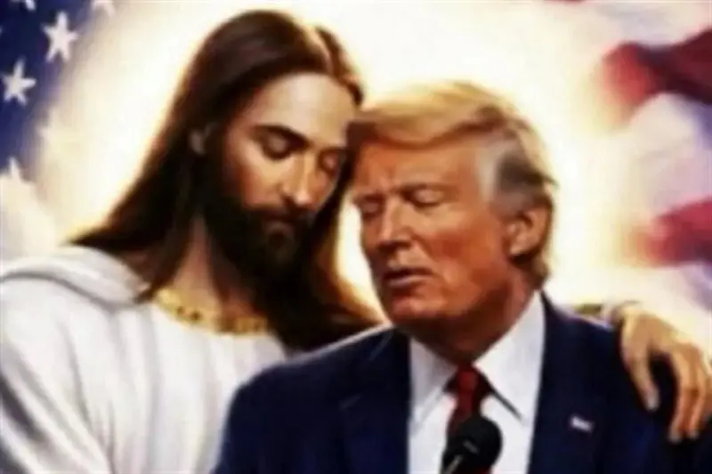 La imagen, compartida de nuevo en la cuenta de Trump en Truth Social, muestra al Mandatario con los ojos cerrados junto a un Jesús en una pose similar.