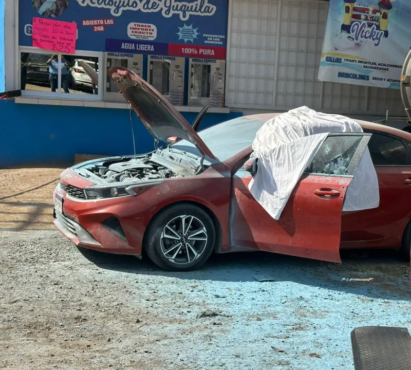 Los hechos ocurrieron sobre la carretera 544, a la altura de la zona conocida como El Camichín, a aproximadamente medio kilómetro de la comisaría y el penal, donde sujetos armados rafaguearon un vehículo de la marca Kia.