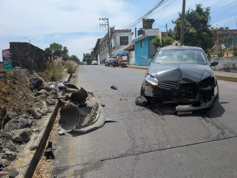URUAPAN, Mich., 17 de abril de 2026.- Dos personas heridas dejó el choque de un vehículo compacto contra un muro de concreto, sobre la calzada Benito Juárez, cerca de la Central Camionera de Uruapan.