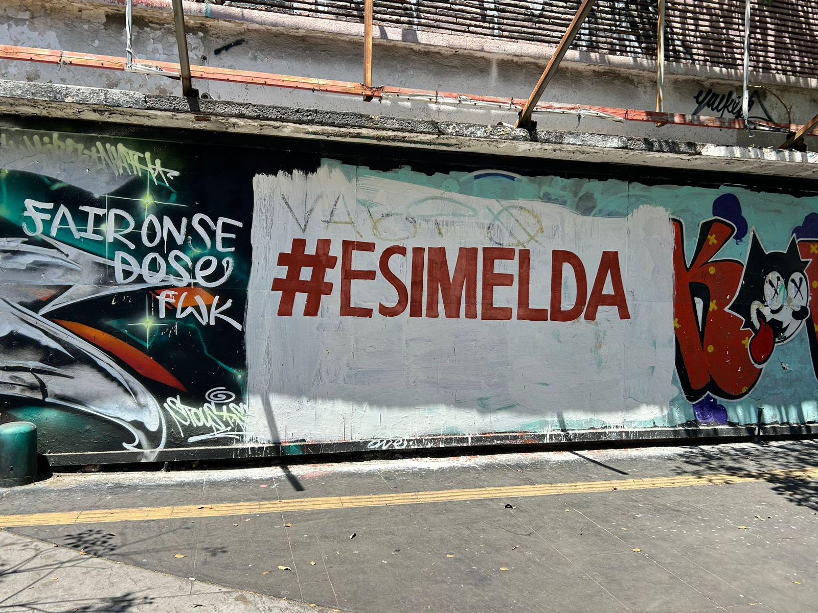 Las pintas, realizadas principalmente en color rojo sobre bardas, incluyen frases como “#EsImelda” en zonas visibles del Centro de Culiacán, así como en sindicaturas.