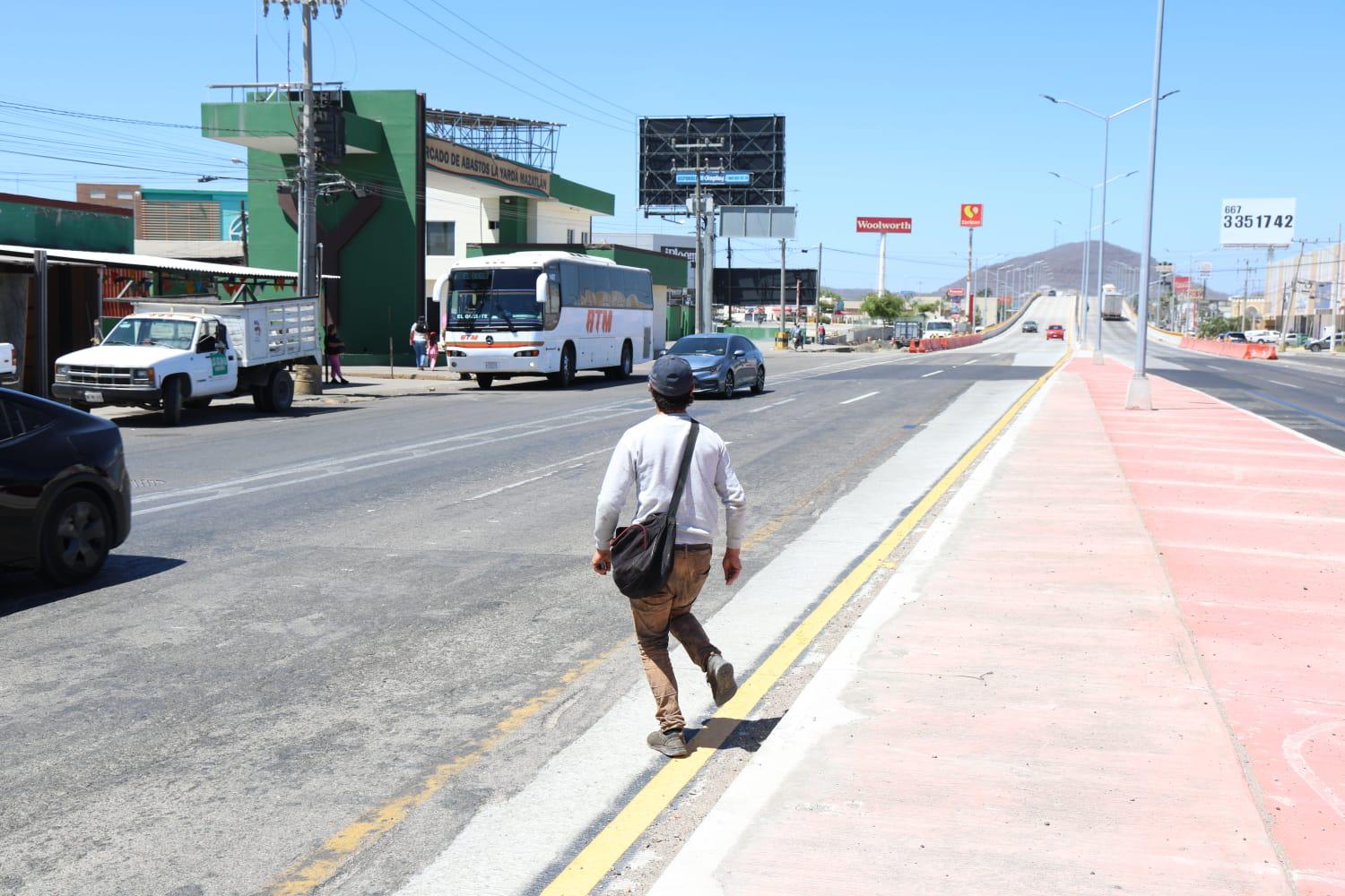 MAZATLÁN._ Pese a que la puesta en operación del Paso Superior Vehicular Óscar Pérez Escobosa, en la salida norte de Mazatlán, ha mejorado la fluidez del tránsito en una de las zonas con mayor carga vehicular, también ha generado nuevas dificultades para peatones que requieren cruzar la carretera Internacional México 15.