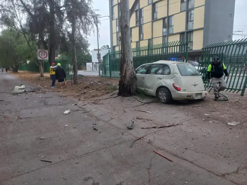 SAN LUIS POTOSÍ, SLP., 19 de abril de 2026.- Los Centros Estatales de Cultura y Recreación Tangamanga informaron que la mañana del domingo 19 de abril se registró un incidente vial al exterior del Parque Tangamanga II, donde un vehículo impactó contra la reja perimetral y posteriormente contra un árbol al interior del recinto.