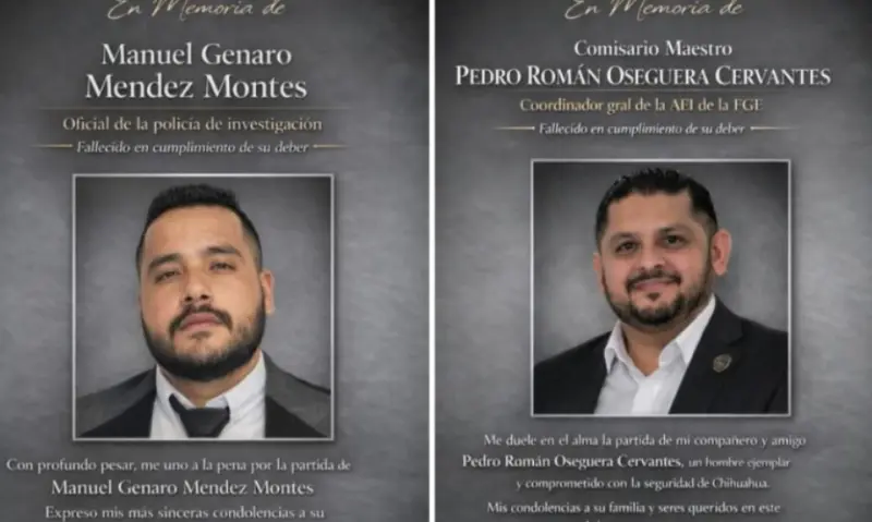 CHIHUAHUA, Chih., 19 de abril de 2026.- La Fiscalía General del Estado lamentó el fallecimiento del titular de la Agencia Estatal de Investigación, Pedro Román Oseguera, así como del agente Manuel Méndez Montes, tras el accidente ocurrido en la Sierra Tarahumara.