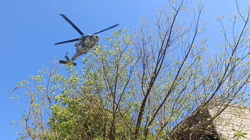 Desde las 10:00 horas, un helicóptero artillado de la Sedena estuvo realizando labores por aire, de acuerdo con lo reportado por vecinos de la periferia.