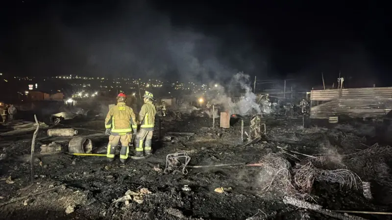 Foto: Border zoomDe acuerdo con Noé Cruz, jefe de turno, al arribo de la primera unidad se confirmó que el fuego se había propagado a varias viviendas, contabilizando alrededor de ocho casas afectadas en una zona considerada de invasión.
