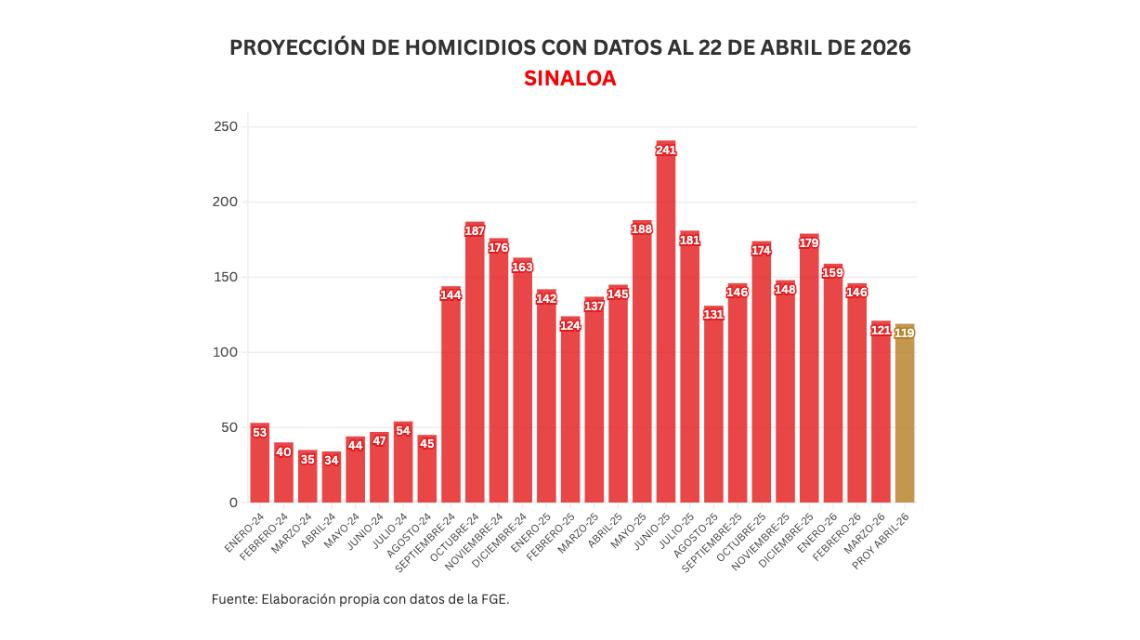 Con estos datos, abril proyecta para cerrar con 119 homicidios.