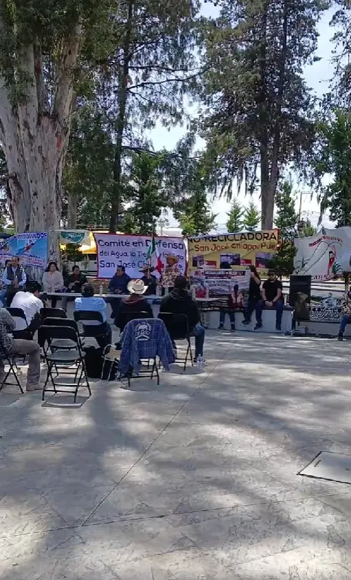 Este 19 de abril se realizó un Foro Informativo en el zócalo de San José Chiapa sobre los riesgos y el posible impacto de la recicladora en el municipio.