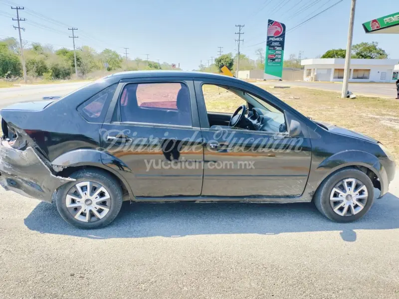 El vehículo Ford de color negro con placas de circulación YZT- 417-H del Estado de Yucatán, era conducido por B.C.P., de 56 años de edad quien tuvo daños en la carrocería.