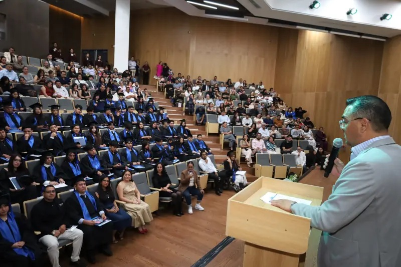 QUERÉTARO, Qro., 25 de abril de 2026.- El director general del Colegio de Bachilleres del Estado de Querétaro (COBAQ), León Enrique Bolaño Mendoza, encabezó la ceremonia de graduación de 65 estudiantes de la generación 2023–2026 de la modalidad de Bachillerato Mixto.