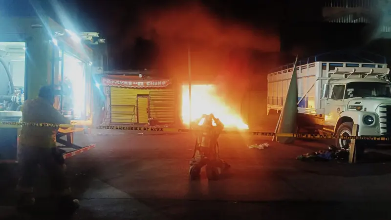 MORELIA, Mich., 27 de abril de 2026.- Este lunes, encapuchados balearon la fachada de un comercio de tragamonedas y después lanzaron bombas motolov, en la Central de Abastos de la ciudad.