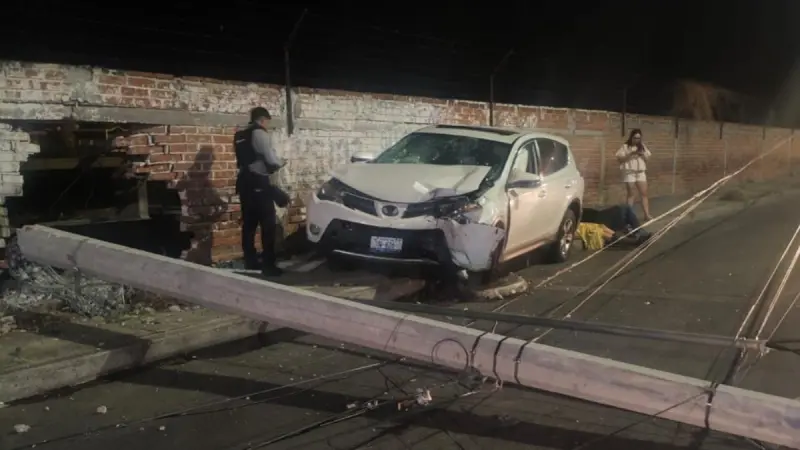El vehículo presentó afectaciones severas en la parte frontal, mientras que el poste quedó derribado sobre la vialidad generando riesgos para la circulación.