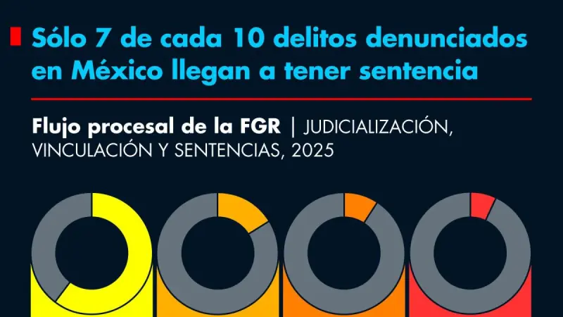 El sistema de justicia penal en México enfrenta retos importantes en la transición de denuncias a sentencias. De acuerdo con el flujo procesal de la Fiscalía General de la República para 2025, una proporción significativa de los casos se queda en etapas intermedias, lo que evidencia limitaciones estructurales en investigación, integración de expedientes y seguimiento judicial.