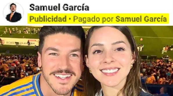 Uno de los puntos que más atención ha generado es que, dentro de la biblioteca de anuncios de Meta, los responsables del pago aparecen como Samuel García y Mariana Rodríguez de manera individual.