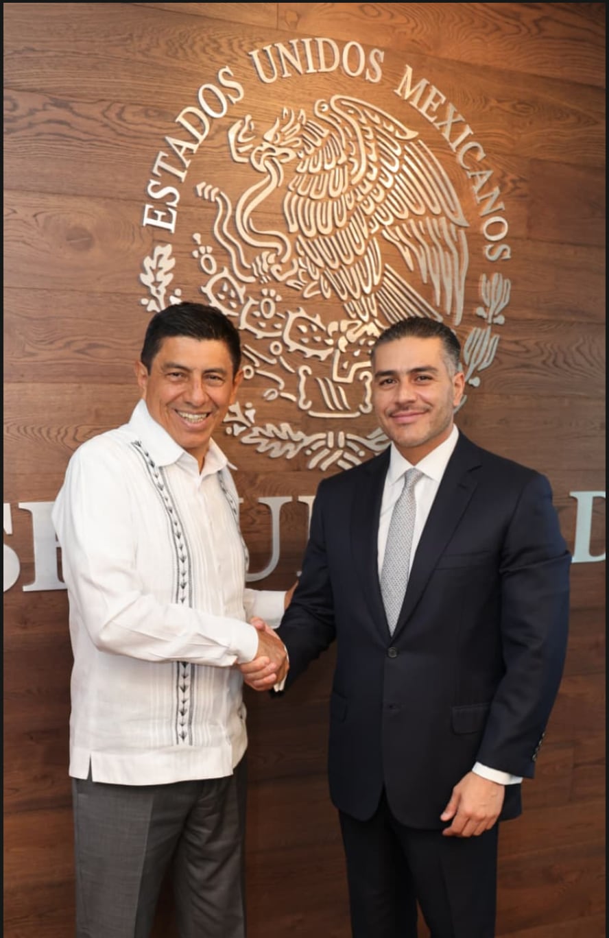 el secretario de Seguridad y Protección Ciudadana, Omar García Harfuch, sostuvo una reunión con el Gobernador de Oaxaca, Salomón Jara Cruz donde evaluaron y dieron seguimiento a las acciones de seguridad desempeñadas en la entidad.