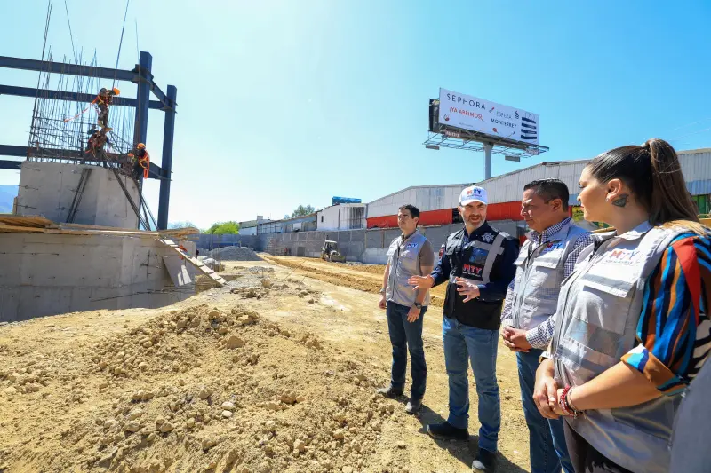El alcalde Adrián de la Garza supervisó este viernes los trabajos, donde constató que la obra se desarrolla conforme a lo programado, acompañado por el secretario de Obras Públicas, Nazario Pineda, así como otros funcionarios municipales.