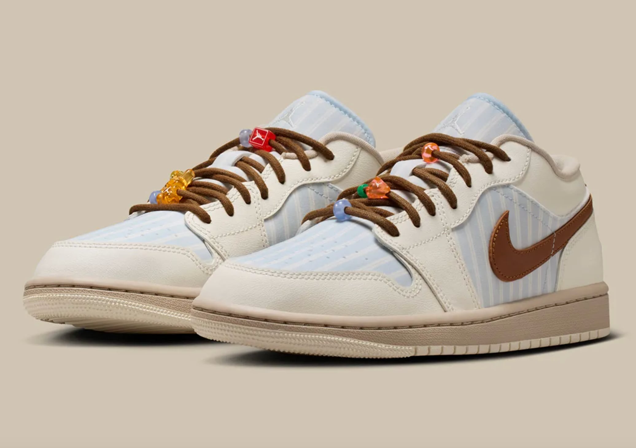 En este marzo de 2026, las Air Jordan 1 Low demuestran que no necesitan colores neón para destacar. La edición “Pinstripes” es una lección de cómo integrar patrones textiles en una silueta de cuero sin romper la armonía del diseño original.