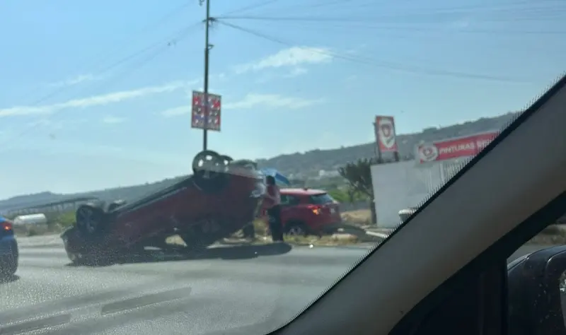 QUERÉTARO, Qro., 14 de marzo de 2026.- Esta mañana de sábado se registró la volcadura de un auto tipo sedán al circular presuntamente a exceso de velocidad sobre el Anillo Vial Fray Junípero Serra en dirección a San José El Alto a la altura de la presa de El Salitre en la ciudad de Querétaro; se espera la llegada de los servicios de emergencia para atender al conductor y mitigar riesgos.