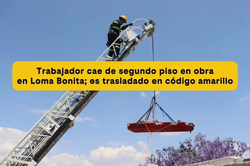 Un trabajador de la construcción resultó lesionado tras caer de aproximadamente dos metros de altura mientras realizaba labores en una estructura en la colonia Loma Bonita.
