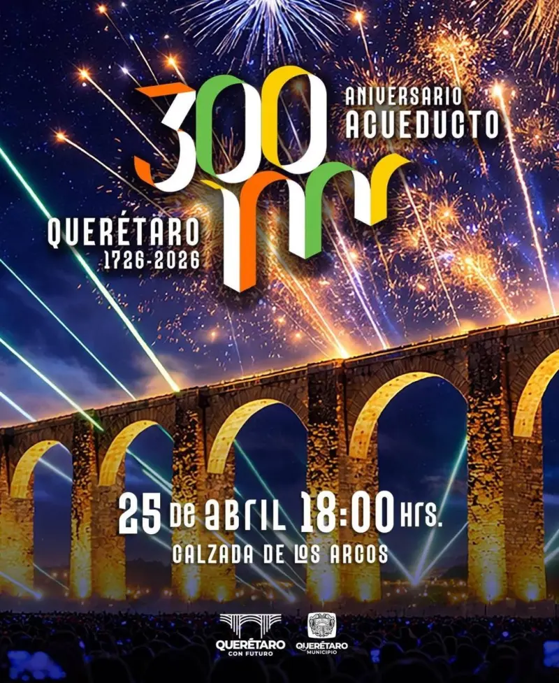 El presidente municipal Felifer Macías Olvera anunció que la cita será el sábado 25 de abril a las 22:00 horas en la Calzada de los Arcos, con un montaje pensado para familias y visitantes. El evento será gratuito y forma parte de la agenda conmemorativa del tricentenario que el gobierno municipal ha venido perfilando desde principios de año.