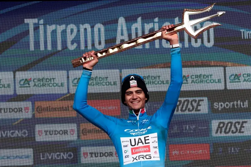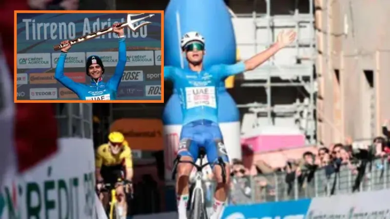 El corredor de 22 años, ganador este año del UAE Tour, también se llevó los maillots de la clasificación por puntos y de los jóvenes gracias a su destacada actuación durante una semana de competencia por el centro de Italia, marcada por condiciones de lluvia y dos exigentes etapas de montaña disputadas el viernes y el sábado.
