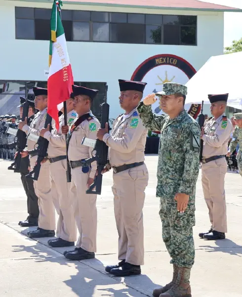 Durante el evento se rindió honores a la bandera y se contó con la presencia del general Juan Manuel Mendoza Portillo, comandante de la 32a. Zona Militar; Carmen González Martín, directora de Gobernación del Ayuntamiento de Mérida, en representación de la alcaldesa Cecilia Patrón Laviada; el coronel Ángel Fernando Ortiz Serra, y el teniente coronel Rolando Meza Puga.— Karla Cecilia Acosta Castillo