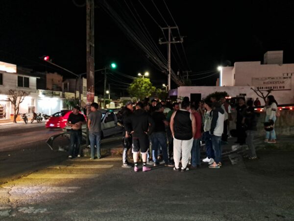 Posteriormente, al sitio llegaron personas allegadas a los ocupantes del Pointer, quienes intentaron agredir al operador de la grúa. Este también solicitó apoyo de conocidos, lo que derivó en una riña que fue controlada por elementos de la Policía Municipal.