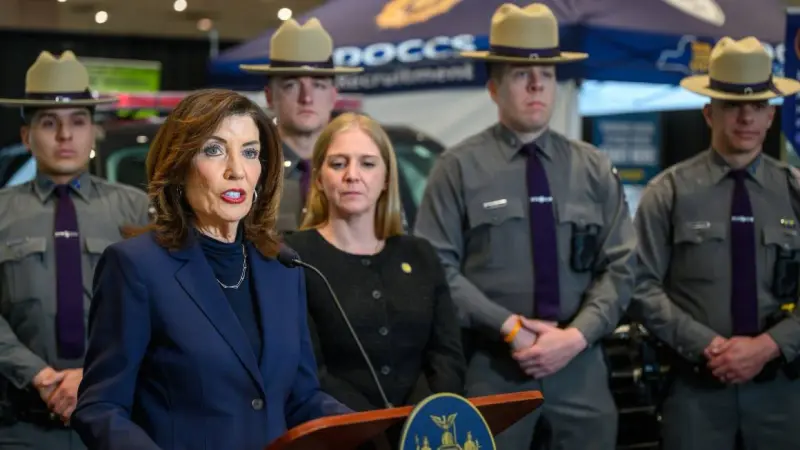 TRENTON, Nueva Jersey, EU, 9 de abril de 2026.- La gobernadora de Nueva York, Kathy Hochul, anunció una alianza entre la Policía Estatal y el Departamento de Servicios Financieros (DFS) para fortalecer el combate al fraude de seguros, particularmente en el sector automotriz, mediante capacitación especializada dirigida a cuerpos de seguridad y personal investigador en todo el estado.