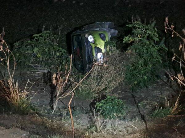 Un Chevrolet Spark se salió del camino y volcó en un canal de desagüe; el conductor fue atendido en el lugar sin requerir hospitalización.